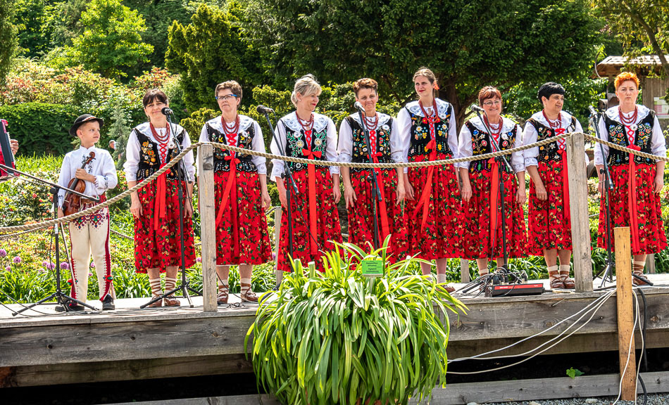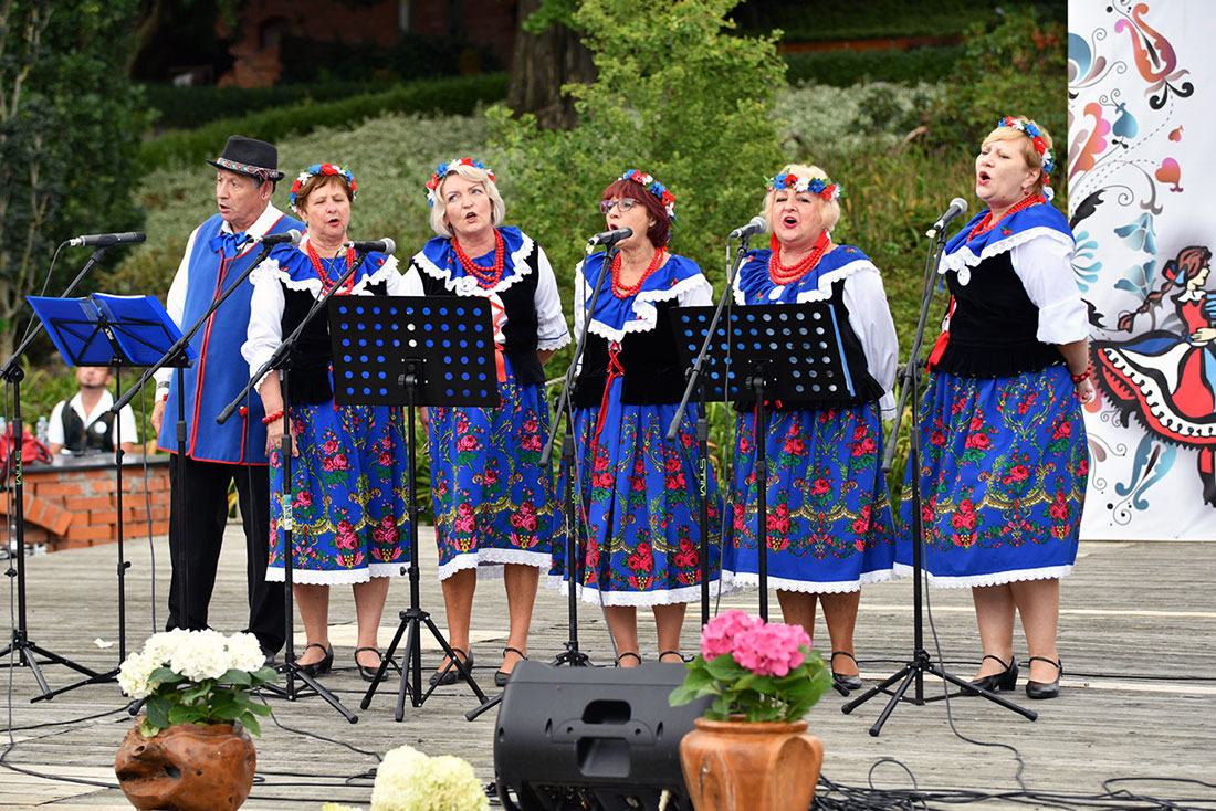 FOLKOVE PRZEGLĄD ZESPOŁÓW FOLKLORYSTYCZNYCH POGRANICZA POLSKO-CZESKIEGO - 28.08.2022. W trakcie odbywającego się w Wojsławicach Folkowego Przeglądu Zespołów Folklorystycznych Pogranicza Polsko -Czeskiego, którego organizatorem i głównym patronem było Dzierżoniowskie Starostwo Powiatowe, nie zabrakło ciekawych zajęć oraz dobrej zabawy. W pierwszym dniu spotkania odbywały się warsztaty kulinarne, prowadzone przez wspaniałego, pełnego humoru kucharza znającego tajniki kuchni polskiej i czeskiej. W drugiej części dnia wszyscy uczestnicy wzięli udział w spacerze z panią przewodnik po wojsławickim Arboretum. Drugiego dnia odbył się przegląd zespołów folklorystycznych działających na terenie pogranicza Polsko-Czeskiego. |