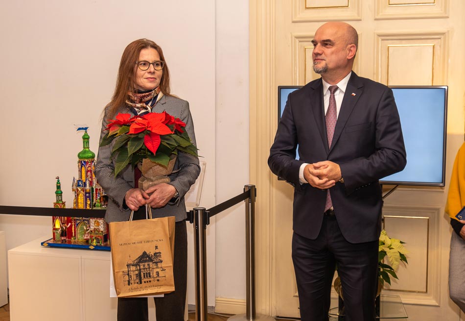 | Piętnaście szopek krakowskich ze zbiorów Muzeum Krakowa, które w 2018 r. zostały wpisane na Reprezentatywną Listę Niematerialnego Dziedzictwa Kulturowego Ludzkości UNESCO, można oglądać do końca stycznia w Muzeum Miejskim Dzierżoniowa. Eksponaty tej rangi gościć będą w Dzierżoniowie po raz pierwszy. Wśród nich znajdziemy zarówno szopki małe, średnie i duże, z których największa, mierząca 160 cm, zdobyła pierwsze miejsce w swojej kategorii w 1988 r. Najstarsze eksponaty pochodzą z roku 1984, najmłodsza szopka została wykonana w roku 2006. (admin.) | ||||||||||||||